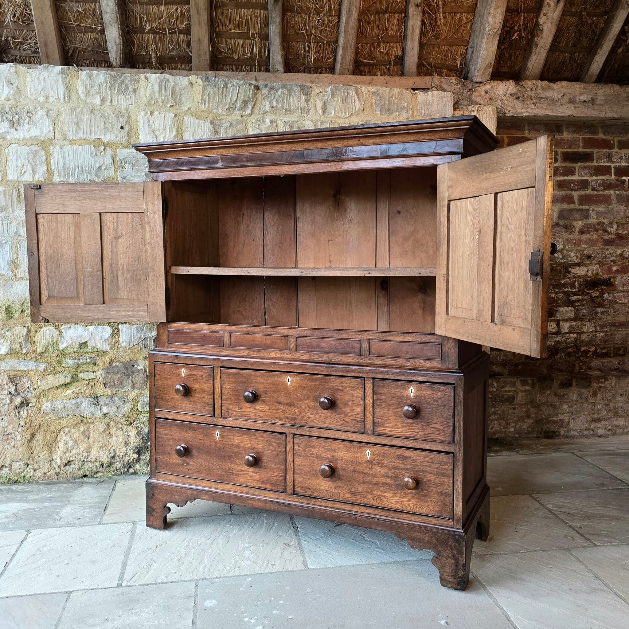 Early C19th Two Part Oak Cupboard